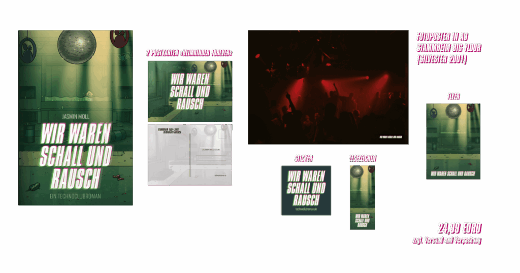 Der Soundtrack zum Buch ist mit der Geschichte von WIR WAREN SCHALL UND RAUSCH verwoben. 60 Tracks, die sich in unsere Erinnerung gebrannt haben, im Stammheim hoch und runter gespielt wurden und die Technoszene prägten.